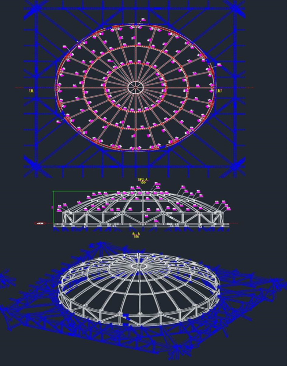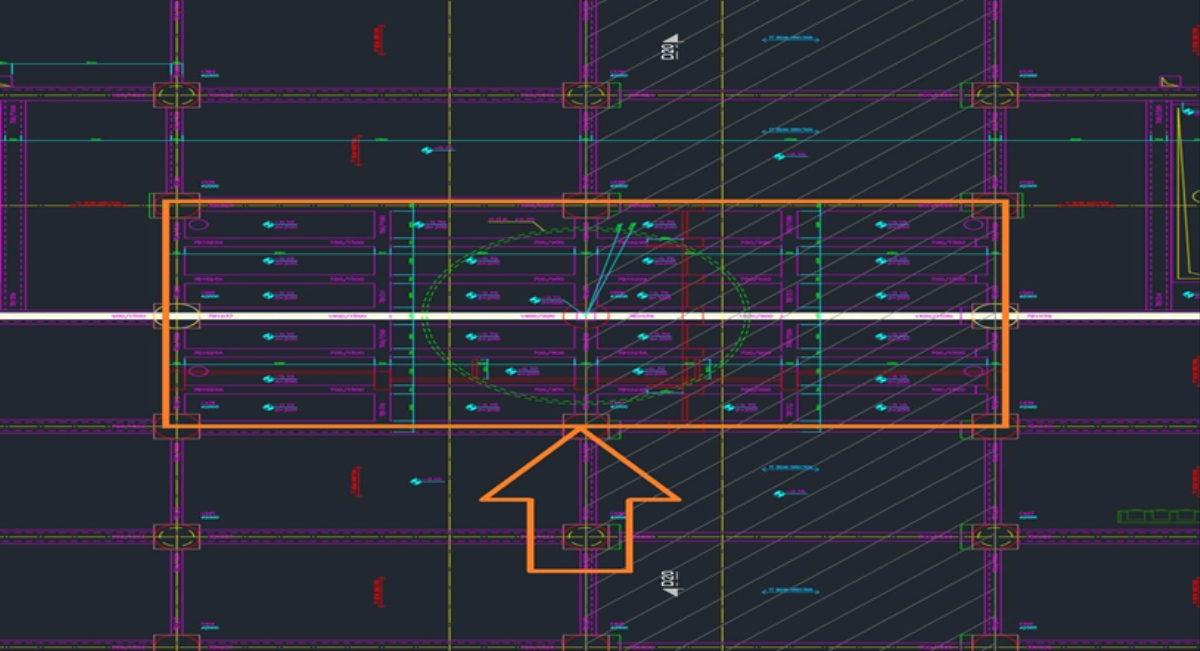 There are columns in two diameters on the D floor, which are 1500mm and 2000mm. On the F floor, the columns are of a single size, 2000mm.